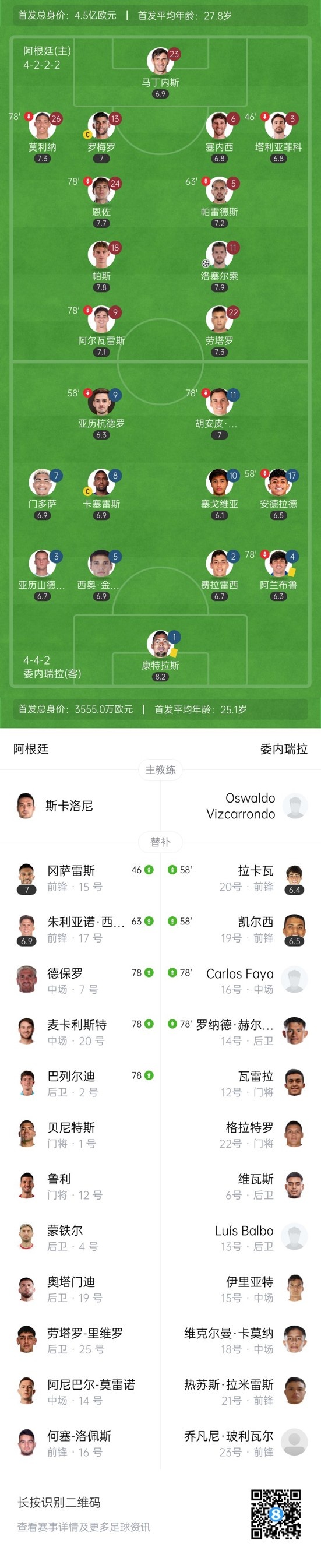 下半场补时4分钟,阿根廷1-0委内瑞拉。
