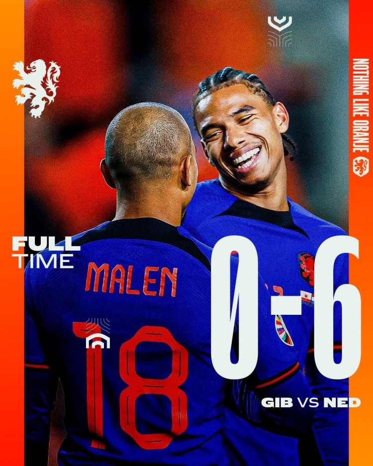 11月22日讯北京时间11月22日凌晨3:45,欧洲杯预选赛第10轮,荷兰客场对阵直布罗陀。上半场,斯滕斯破门为荷兰队首开纪录,随后韦弗、库普梅纳斯破门扩大比分优势;下半场,斯滕斯连入两球完成帽子戏法,加克波替补破门。全场比赛结束,荷兰6-0直布罗陀!