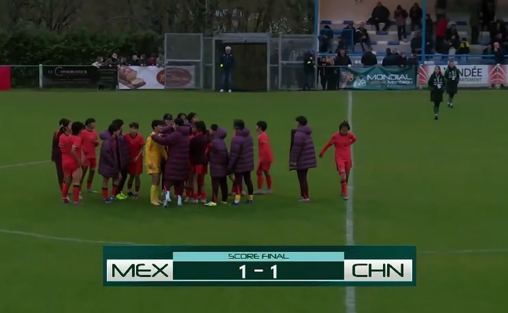 04月04日讯 蒙太古女杯小组赛A组第3轮,中国女足U16对阵墨西哥女足U16。上半场,周瑾彤破门,吴逸羲被罚下,妮可·希门尼斯为墨西哥扳平比分。下半场双方均无建树,最终U16女足1-1战平墨西哥女足U16,小组赛2胜1平保持不败。