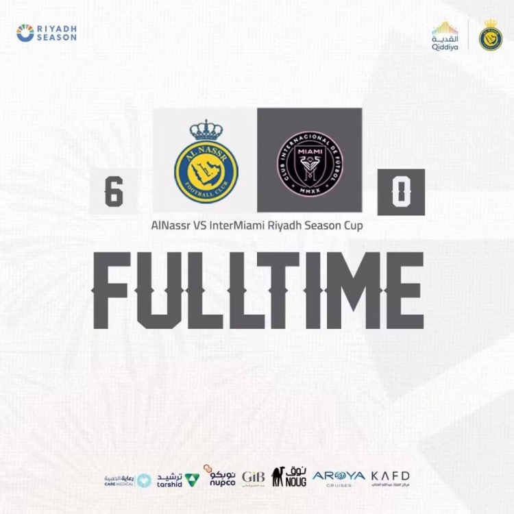 2月2日讯 北京时间2月2日凌晨2点整,2024年足球友谊赛展开角逐,利雅得胜利对阵迈阿密国际。上半场奥塔维奥和塔利斯卡破门,拉波尔特后场吊门进球,双方爆发冲突,布斯克茨染黄,下半场塔利斯卡上演帽子戏法,马兰建功,梅西83分钟替补登场。最终利雅得胜利6-0大胜迈阿密国际,C罗本场因伤缺阵。迈阿密友谊赛遭遇3连败,共丢11球,3场被零封,下场将对阵中国香港全明星队。