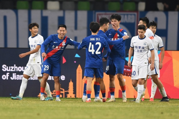第24分钟,周俊辰右路任意球开出,小禁区里任世哲把球一挡,不慎挡入自家球门左下角死角!上海申花1-0沧州雄狮↓