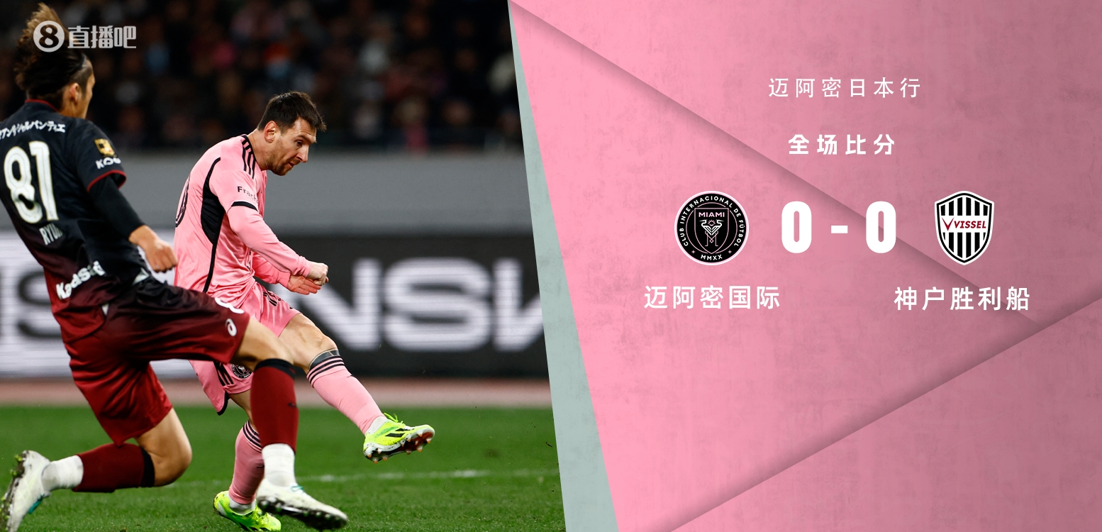 2月7日讯 北京时间18:00,迈阿密国际日本行,对阵J联赛球队神户胜利船。上半场梅西未登场,转播镜头多次给到梅西。比赛方面,布斯克茨遭大迫勇也踩踏伤退;下半场,梅西半场热身,第60分钟登场,错失一次单刀机会。常规时间战平后,双方进入点球大战,最终迈阿密国际3-4负于神户胜利船。梅西本场比赛替补出场30+分钟,点球大战未罚点。6场热身赛梅西3首发2替补,仅中国香港行未登场。