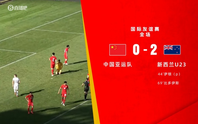 伤停补时3分钟。全场场比赛结束,国足亚运队0-2新西兰U23。