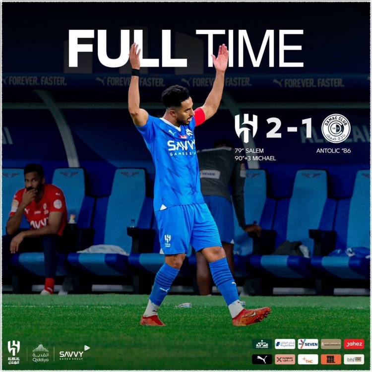 第79分钟,利雅得新月传中到后点,米林科维奇头球点回来,多萨里胸部停球左脚抽射远角!球进了!利雅得新月1-0领先达马克↓