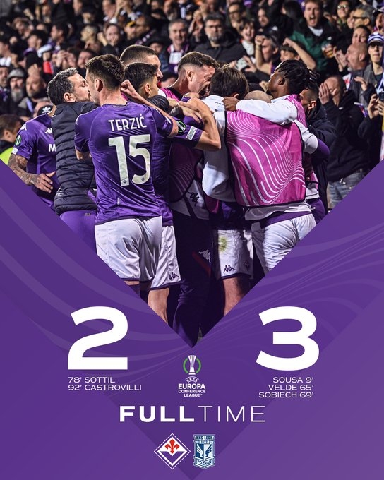 在首回合主场大比分落败的情况下,波兹南莱赫来到客场先声夺人,他们在第9分钟就由阿方索-索萨取得进球,下半场又由维尔德和索比赫进球将比分变成3-0,这让佛罗伦萨处在了巨大的压力之下。不过,紫百合在78分钟由索蒂尔扳回一球,然后又在伤停补时阶段由卡斯特罗维利将比分扳为2-3。最终,佛罗伦萨以总比分6-4昂首闯进半决赛。