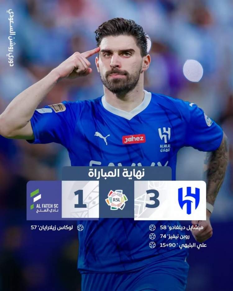 利雅得新月出场阵容:37-布努、66-阿卜杜勒哈米德、3-库利巴利、5-布莱希、6-洛迪(68’12-沙赫拉尼)、8-内维斯、28-卡努(63’56-卡赫塔尼)、7-法拉杰(63’11-谢赫里)、16-纳赛尔-多萨里(63’14-哈姆丹)、96-迈克尔(88’2-布雷克)、22-米林科维奇