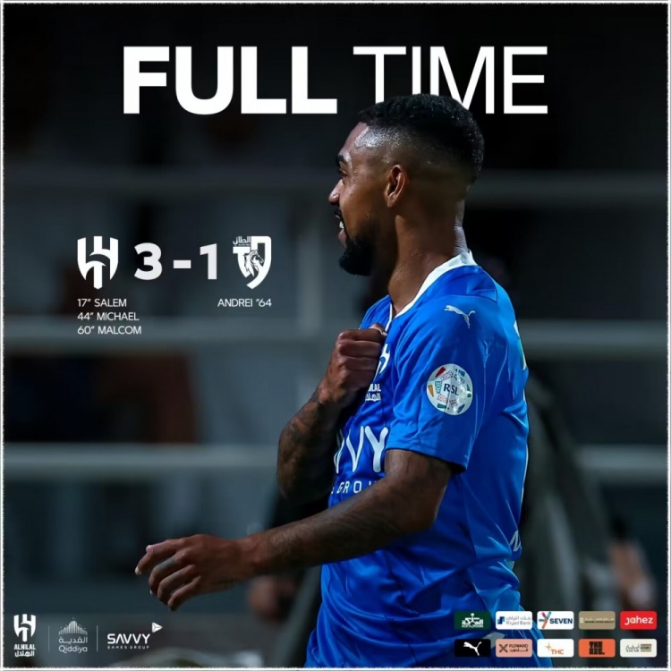 利雅得新月出场阵容:37-布努(82’21-奥韦斯)、66-阿卜杜勒哈米德(68’2-布莱克)、3-库利巴利、5-布莱希、6-洛迪(68’16-纳赛尔-多萨里)、8-鲁本-内维斯、22-米林科维奇、77-马尔科姆、96-迈克尔、29-萨勒姆-多萨里(68’7-法拉吉)、9-米特洛维奇(82’14-哈姆丹)