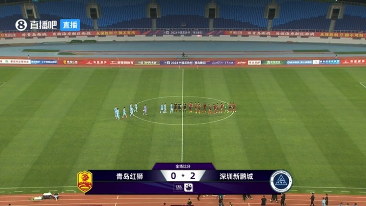 全场比赛结束,深圳新鹏城2-0青岛红狮。