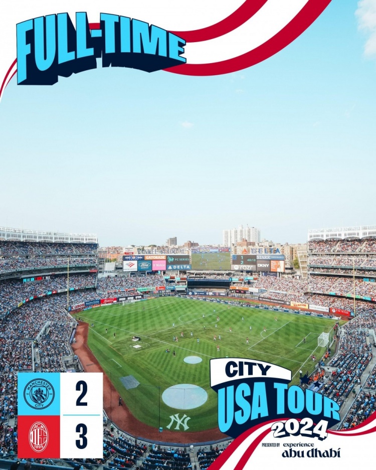 7月28日讯 友谊赛曼城vsAC米兰,上半场,哈兰德破门,科隆博4分钟内双响反超,丘库埃泽同样的方式助攻双响!弗洛伦齐伤退。下半场,麦卡蒂头球扳平,纳斯蒂帮助米兰再次领先!最终AC米兰3-2击败曼城,取得季前赛首胜;曼城遭遇季前赛两连败。