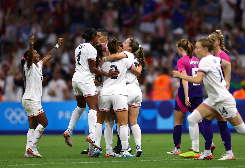 7月29日讯 奥运女足小组赛B组,美国女足4-1德国女足,提前晋级1/4决赛。