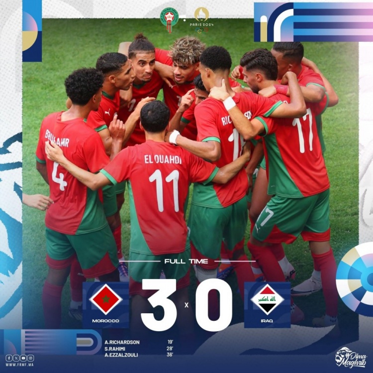 7月31日讯 奥运男足B组第3轮,摩洛哥国奥3-0轻取伊拉克国奥,头名晋级淘汰赛。