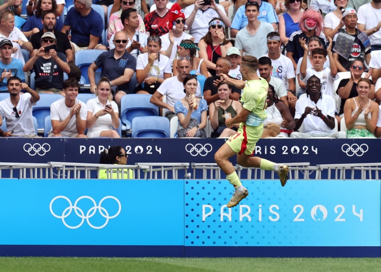 8月3日讯 北京时间8月2日23:00,奥运会男足1/4决赛,日本国奥对阵西班牙国奥。上半场,埃里克-加西亚开场1分钟染黄,费尔明世界波破门,细谷真大进球但越位在先;下半场,费尔明凌空斩再下一城,阿贝尔-鲁伊斯抢射锁定胜局。最终,西班牙国奥3-0击败日本国奥晋级4强,半决赛将对阵摩洛哥。