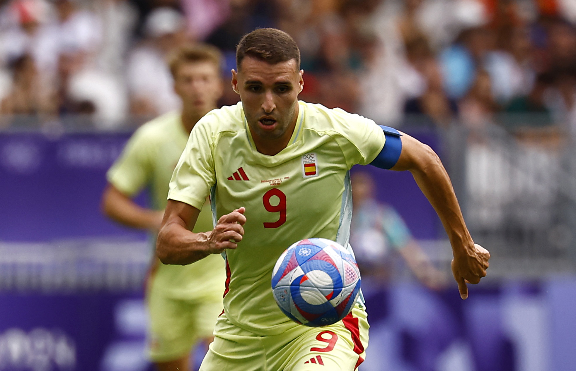 第11分钟,西班牙国奥球员巴里奥斯前场施压成功,费尔明弧顶前沿得球连续横向盘带后起左脚远射,皮球飞入球网,西班牙国奥1-0领先日本国奥。