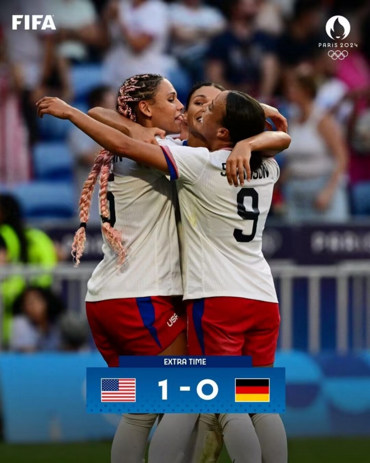 全场比赛结束,美国1-0德国。