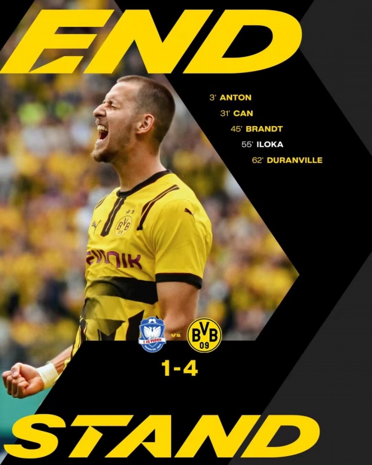 8月18日讯 北京时间8月18日00:00,德国杯第一轮多特挑战凤凰吕贝克的比赛,上半场格罗斯助攻安东闪击得手收获首球,阿德耶米造点,埃姆雷詹点射扩大比分,布兰特补时阶段再下一城,下半场伊洛卡抽射扳回一城,迪朗维尔单刀扩大比分,最终多特4-1凤凰吕贝克晋级第二轮,沙欣执教首秀取得开门红。