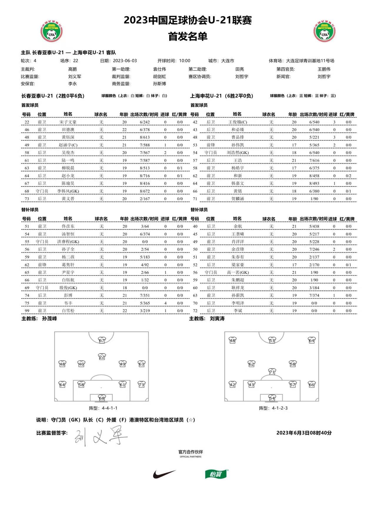 相关阅读:U21联赛长春亚泰U21上海申花U21足球