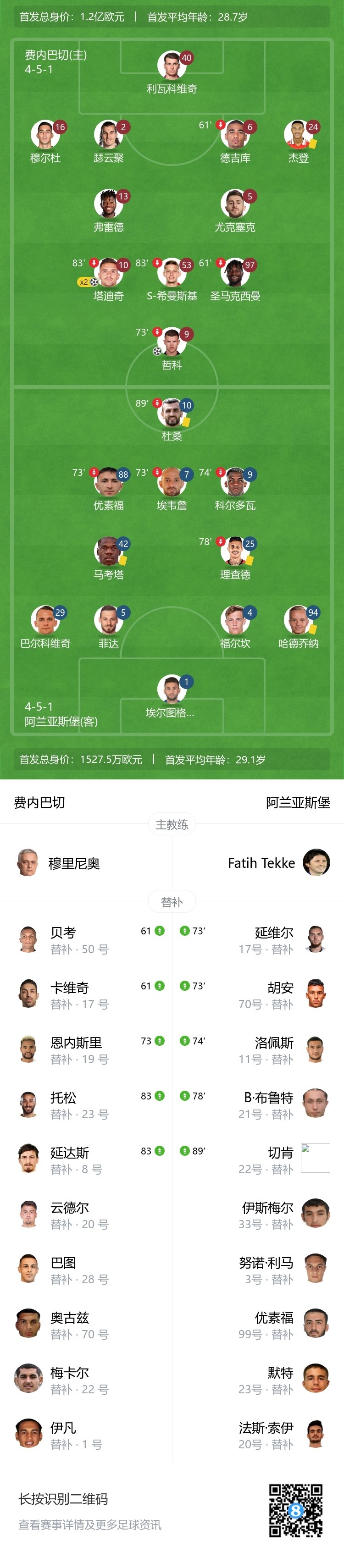 第67分钟,费内巴切反击,弗雷德分边,卡维奇敲到点球点附近!哲科右脚直接破门!费内巴切3-0阿兰亚斯堡↓