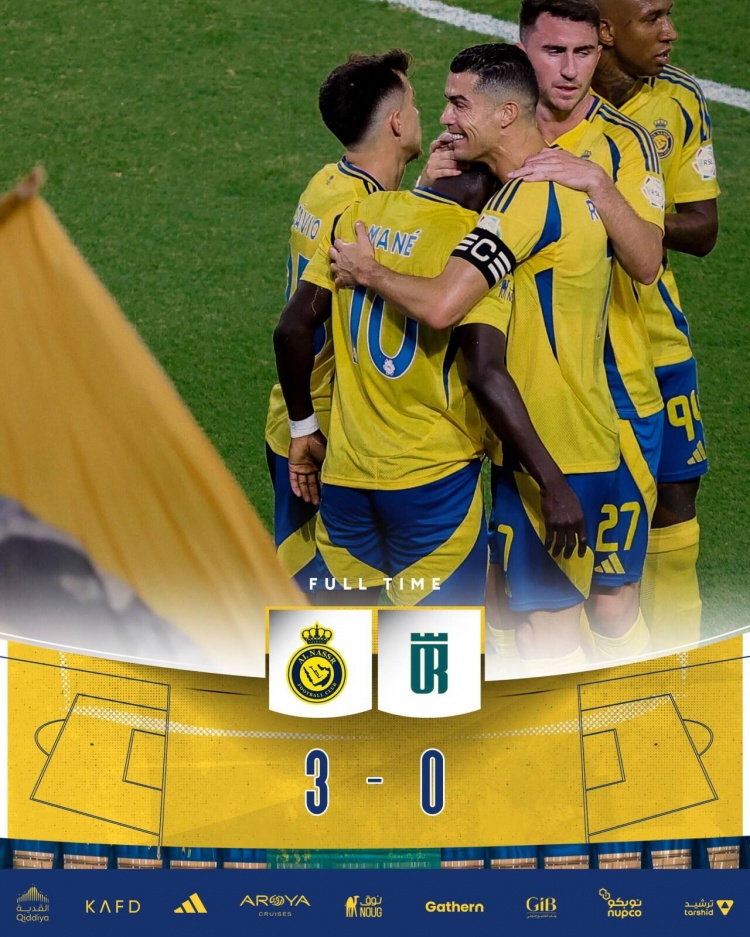 利雅得胜利首发:24-本托、2-哈纳姆(19'83-塞勒姆)、3-西马坎、27-拉波尔特、12-纳瓦夫、17-哈巴利、11-B罗(82'29-加里卜)、25-奥塔维奥、94-塔利斯卡(68'16-马兰)、10-马内(80'23-叶海亚)、7-C罗(82'19-哈桑)