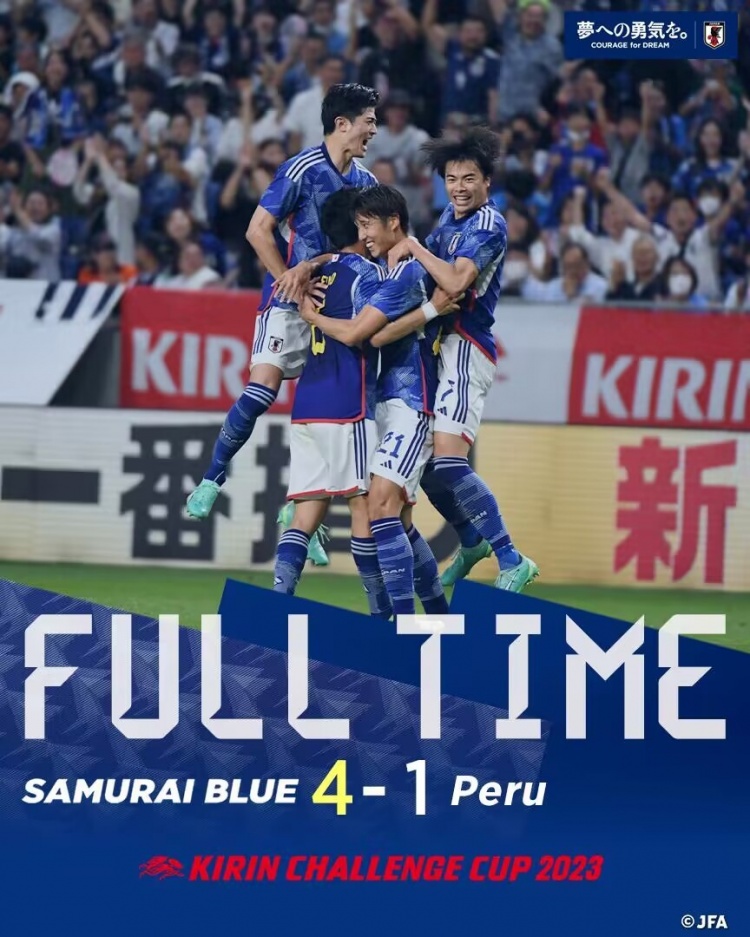 6月20日讯 北京时间6月20日17:55,麒麟杯足球锦标赛,日本对阵秘鲁。上半场,伊藤洋辉世界波破门为日本队首开纪录,随后三笘薫再入一球扩大比分优势;下半场,三笘薫助攻伊东纯也再下一城,随后前田大然替补建功锦上添花,冈萨雷斯破门为秘鲁扳回一球!全场比赛结束,日本4-1秘鲁,第一场日本6-0萨尔瓦多,两场比赛日本队攻入10球!