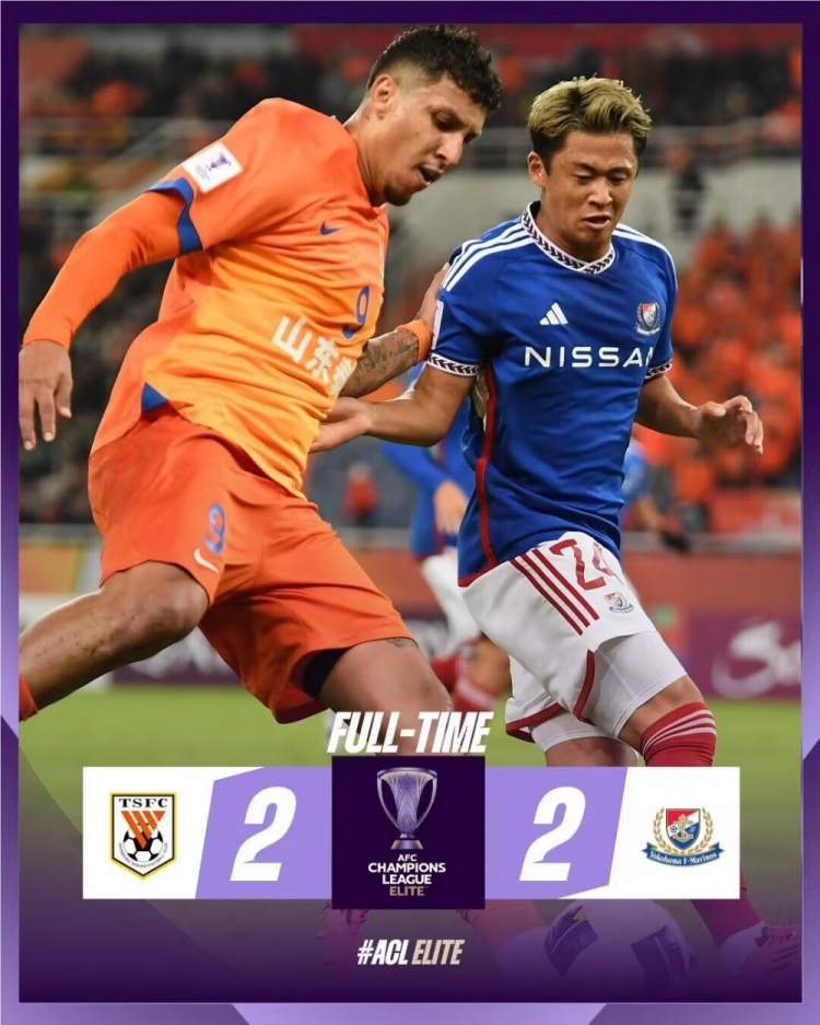 全场比赛结束,山东泰山2-2战平横滨水手。