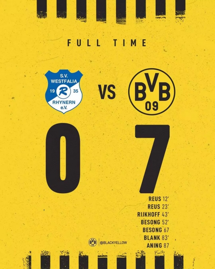 7月13日讯 刚刚结束的友谊赛,罗伊斯独造三球,助多特蒙德7-0大胜第5级别联赛的威斯特法伦里内恩。