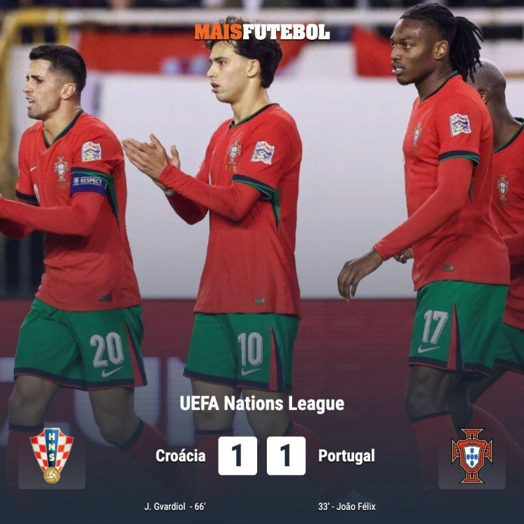 11月19日讯 北京时间11月19日凌晨3时45分,欧国联A1组第6轮展开角逐,葡萄牙客场挑战克罗地亚。上半场菲利克斯单刀打破僵局,维蒂尼亚精准长传制导,下半场格瓦迪奥尔进球越位+扳平比分,克罗地亚3次中框。最终葡萄牙客场1-1战平克罗地亚,积分榜方面,葡萄牙积14分位居小组头名晋级,克罗地亚积8分名列小组第二同样晋级。