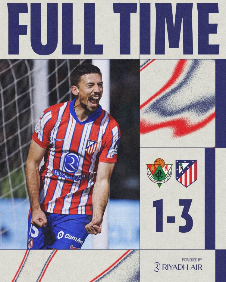马竞首发:1-穆索、3-阿斯皮利奎塔(46'19-阿尔瓦雷斯)、20-维特塞尔、21-哈维-加兰、24-勒诺曼德(46'15 -朗格莱)、5-德保罗、6-科克(59'8-巴里奥斯)、12-利诺、17-里克尔梅(46'14-略伦特)、9-索尔洛特、10-科雷亚(65'4-加拉格尔)