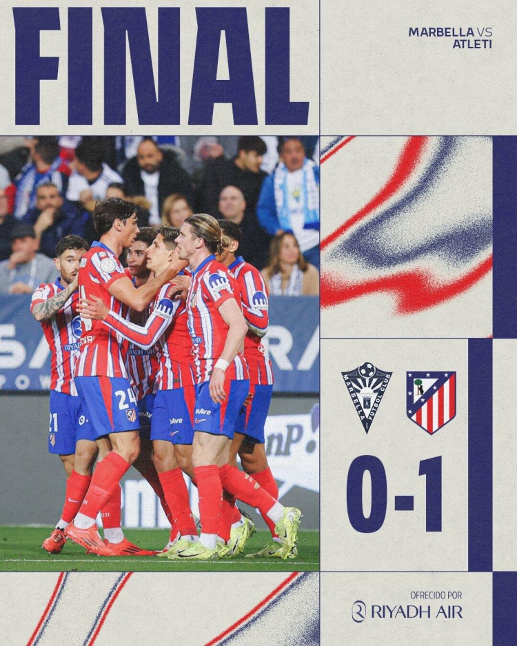 1月5日讯 北京时间1月5日04:30,西班牙国王杯第三轮马竞挑战马贝拉的比赛在马贝拉市政体育场进行,上半场格列兹曼补射破门首开记录,下半场德保罗破门被吹,加拉格尔推射中柱,杜月徵替补登场10分钟,最终马竞1-0马贝拉成功晋级。