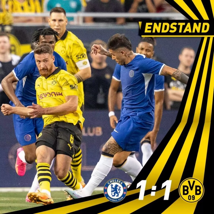 第88分钟,伯斯托利用任意球机会头球扳平比分,切尔西1-1多特蒙德。↓