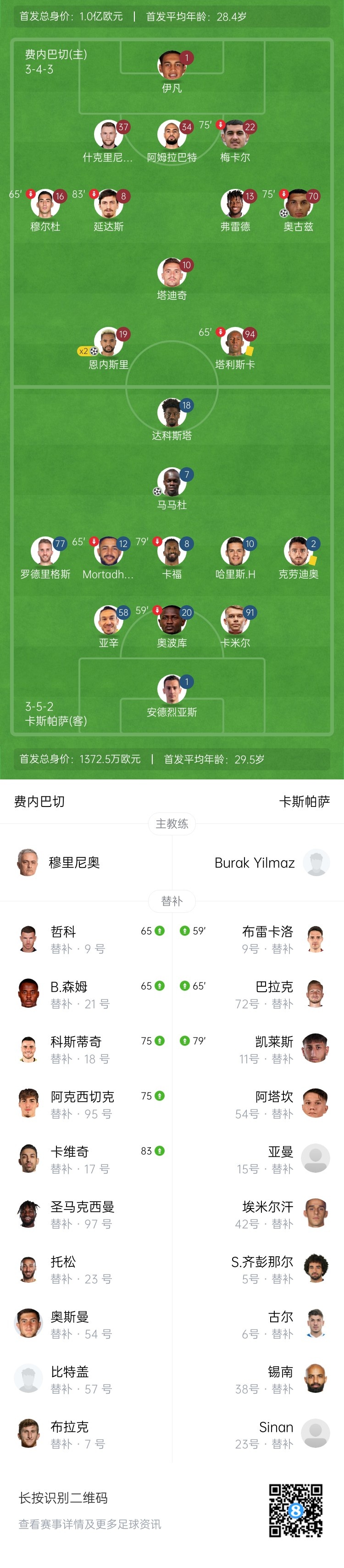 第71分钟,恩内斯里单刀挑射!皮球被后卫在门线附近铲出来!随后主裁确认皮球已完全越过门线,恩内斯里完成双响!费内巴切3-1卡斯帕萨↓