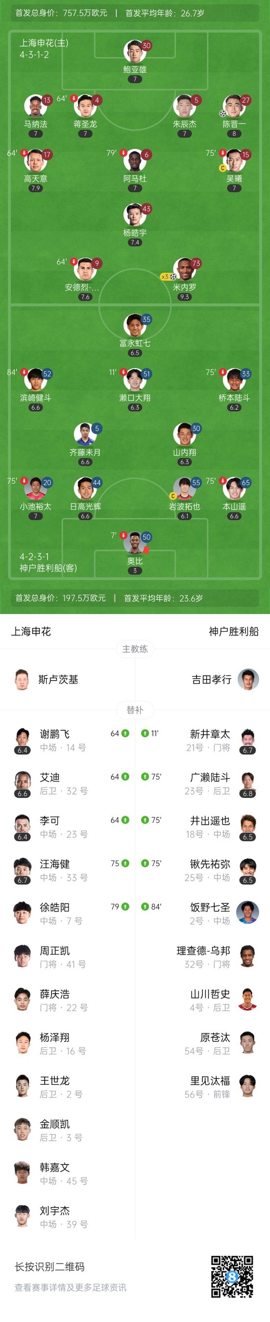 第93分钟,神户再下一城!右路定位球开到禁区井出遥也头球被鲍亚雄扑了一下后弹进球门,申花4-2神户。↓