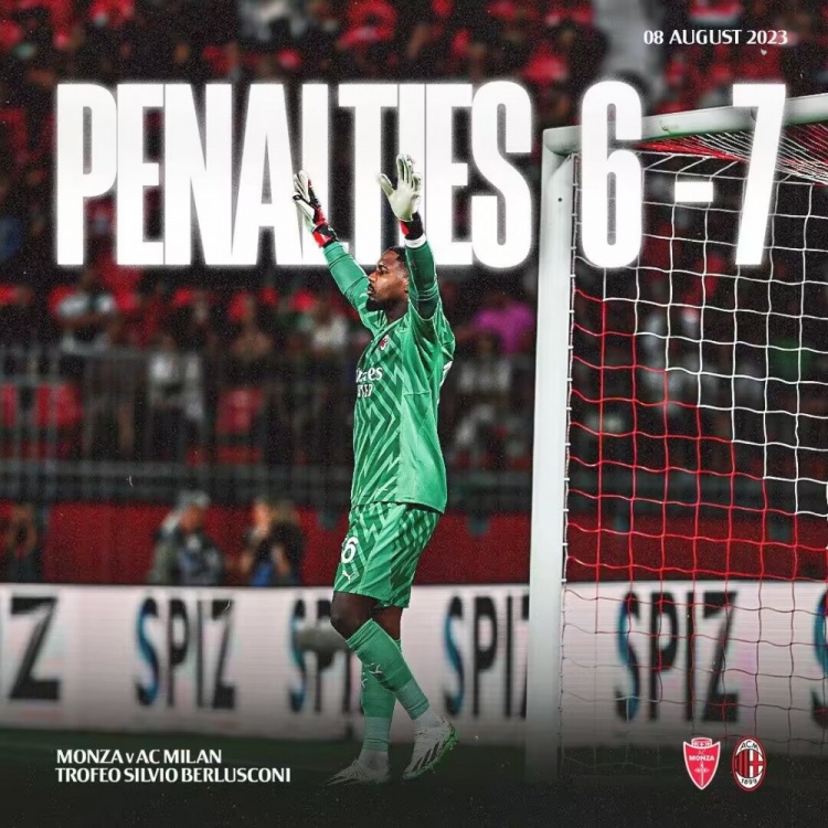第四轮,奇克和弗兰科-卡博尼也都命中,点球大战米兰4-4蒙扎!