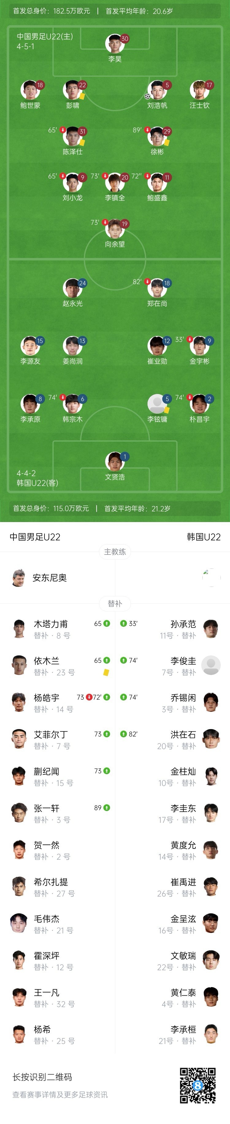 第73分钟,蒯纪闻、艾菲尔丁、杨皓宇替补登场。↓