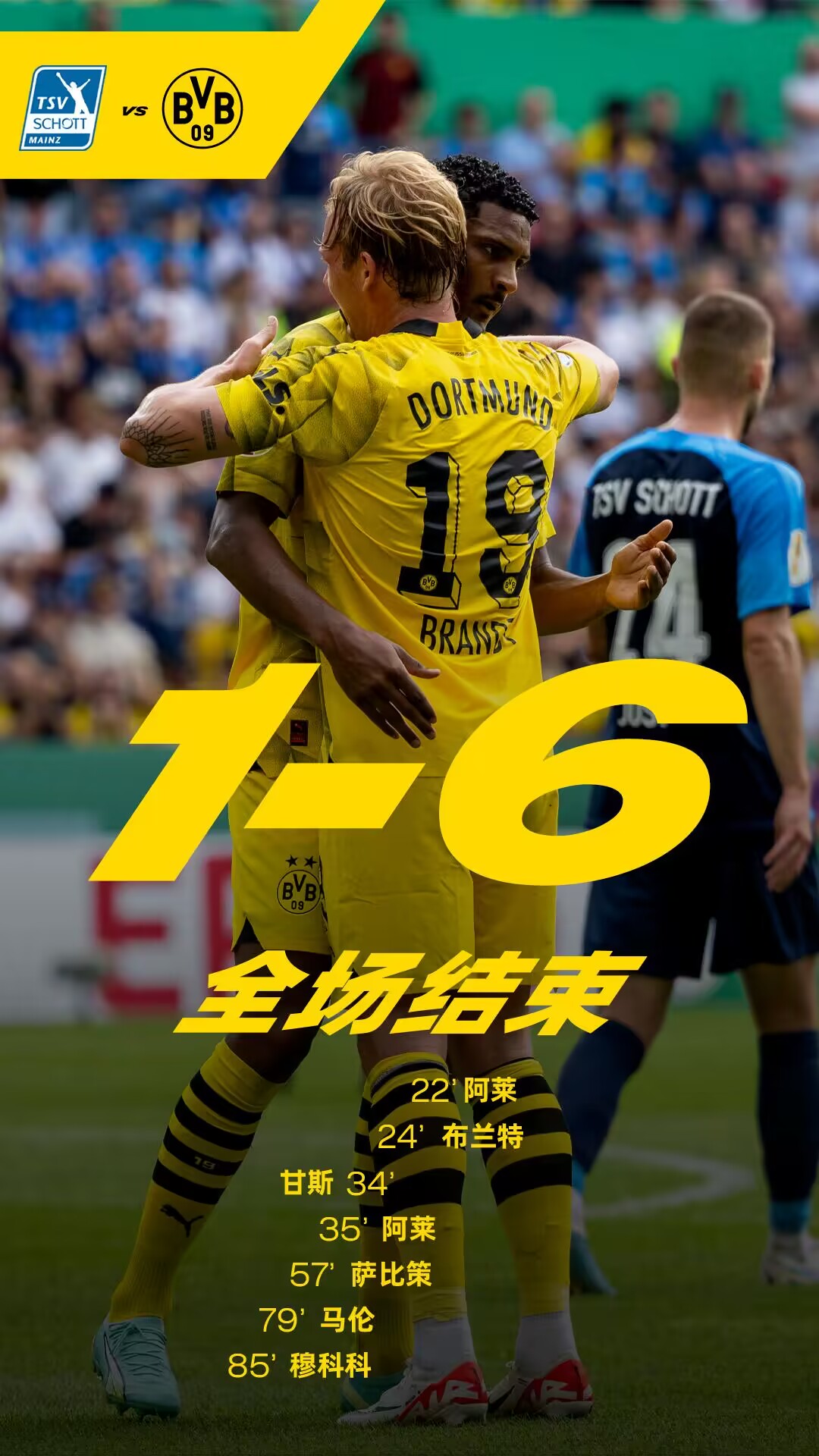 全场比赛结束, 多特蒙德6-1肖特美因茨。