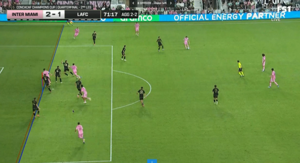 第60分钟,梅西禁区前沿送出挑传,阿伦跟进头球攻门,防守球员门线上想要解围未能成功,迈阿密国际2-1洛杉矶FC。↓