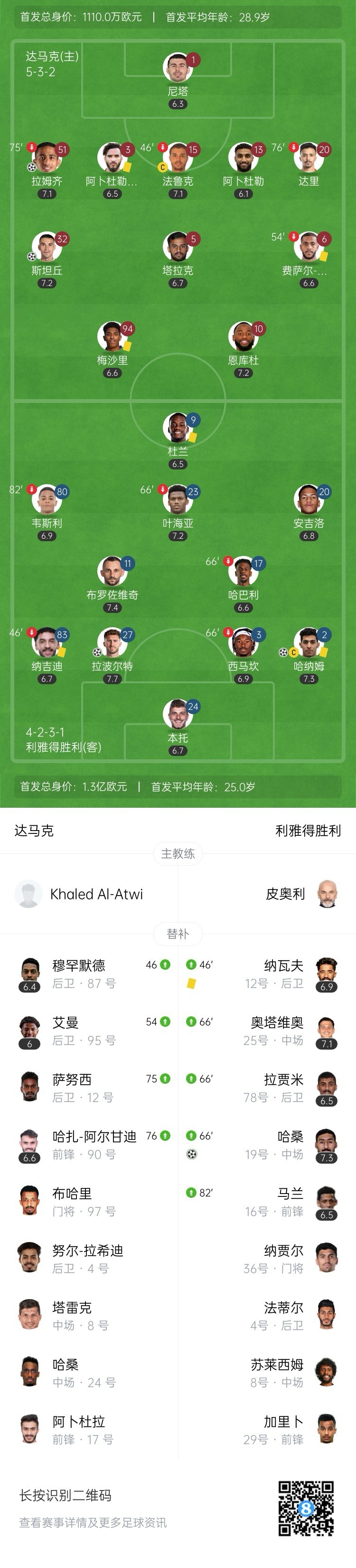 全场比赛结束,利雅得胜利客场3-2逆转达马克。