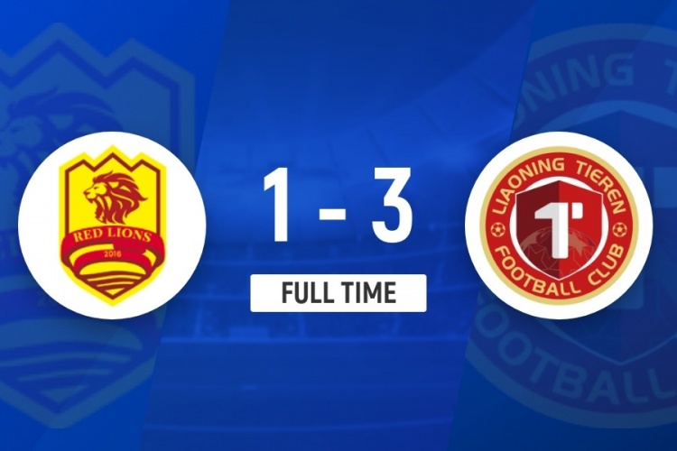伤停补时4分钟。全场比赛结束,青岛红狮1-3辽宁铁人。