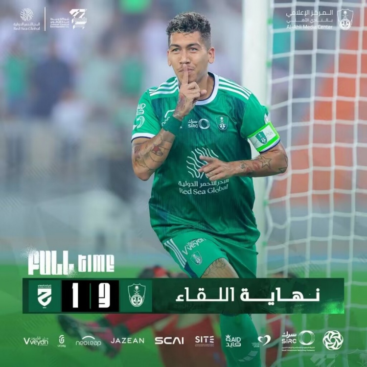 第10分钟,马赫雷斯右路突入禁区横扫门前,菲尔米诺后点轻松推射破门!吉达国民2-0哈森姆↓