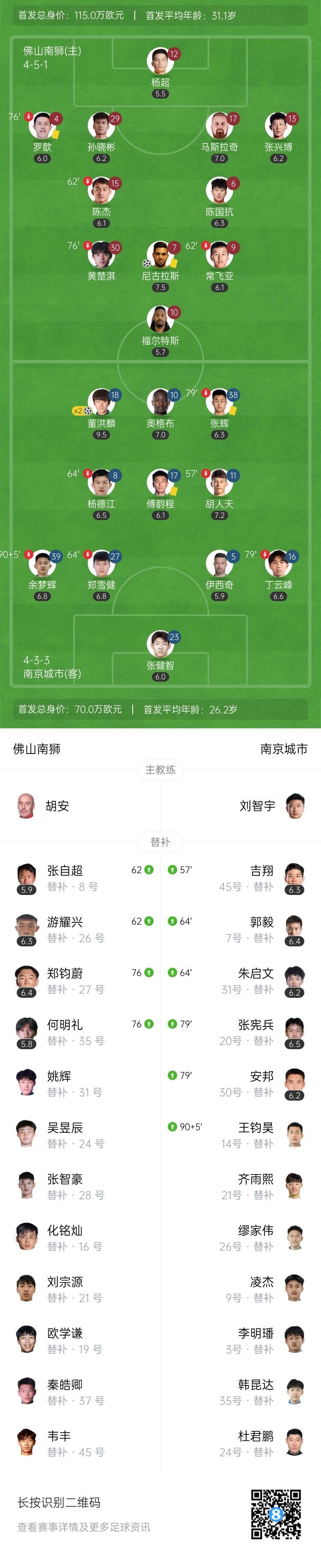 第34分钟,尼古拉斯和队友打出撞墙配合后杀入禁区打远角扳回一球,佛山南狮1-3南京城市。↓