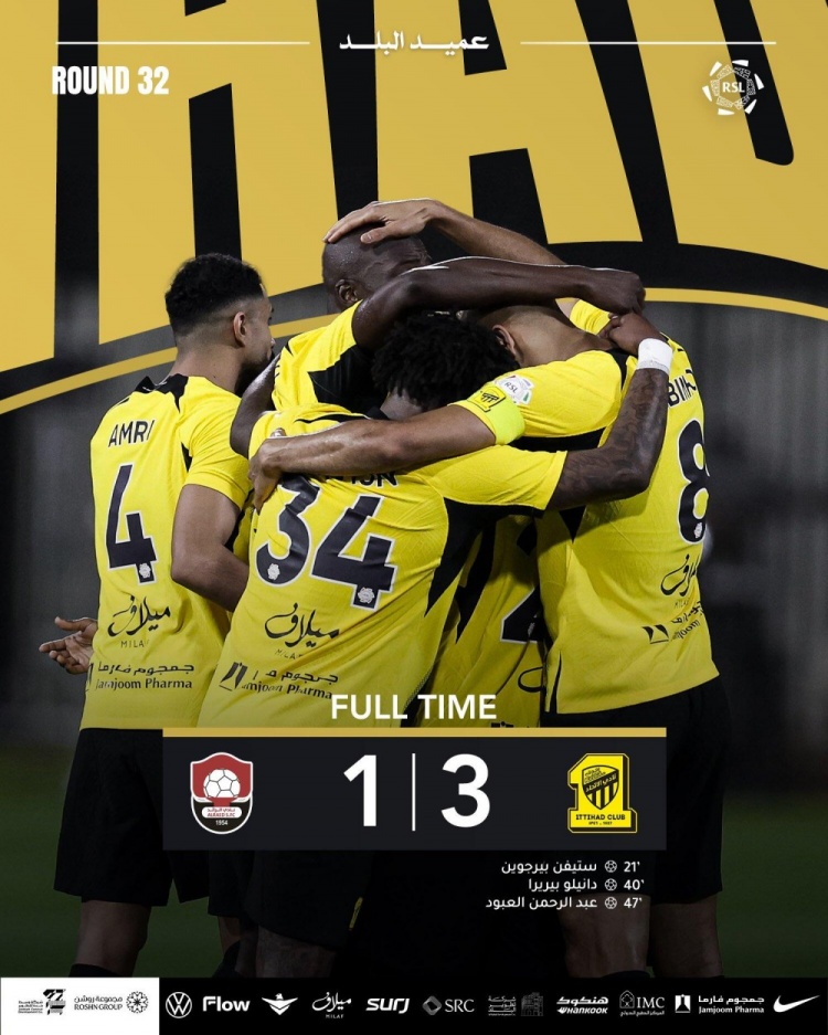 5月16日讯 北京时间5月16日02:00,沙特联第32轮吉达联合挑战布赖代先锋的比赛,上半场冈萨雷斯推射闪击得手,贝尔温抽射扳平比分随后中柱,佩雷拉头球破门反超比分,下半场阿布德破门扩大比分,最终吉达联合3-1逆转布赖代先锋提前两轮夺得联赛冠军。