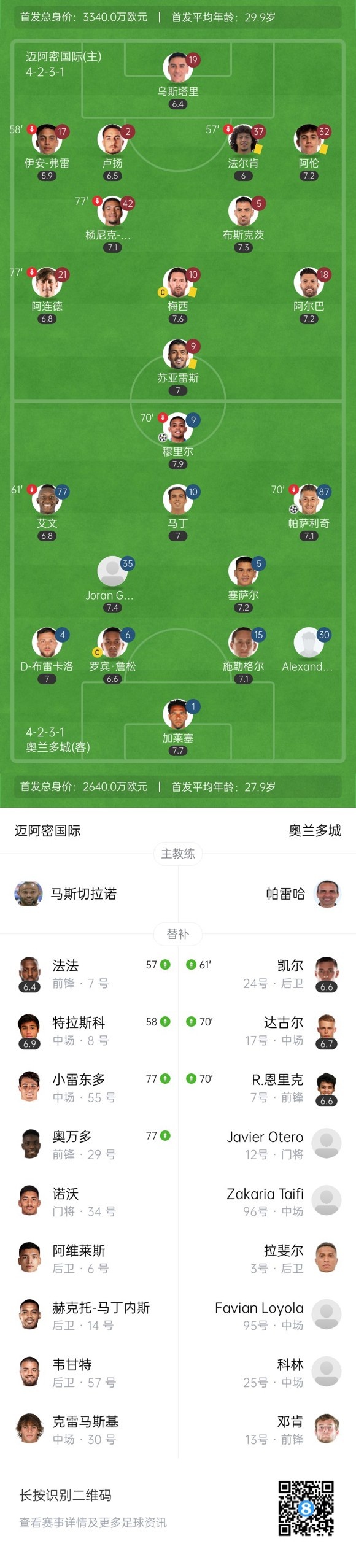 第93分钟,奥兰多城锁定胜局!麦奎尔左路下底横传门前索尔哈尔松包抄破门,迈阿密国际0-3奥兰多城。↓