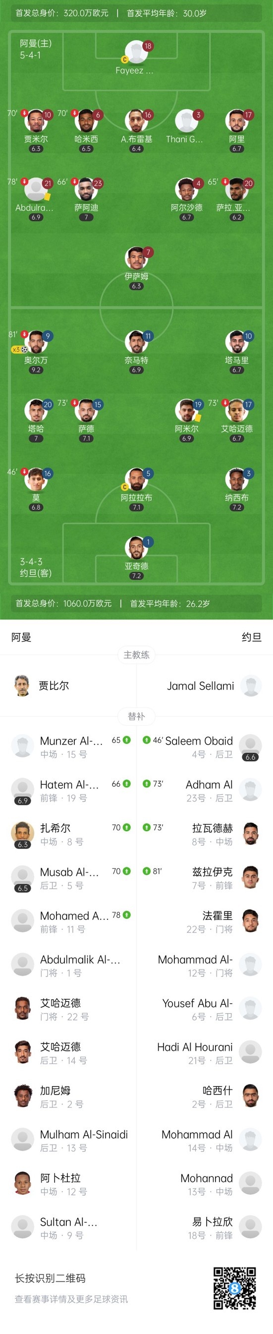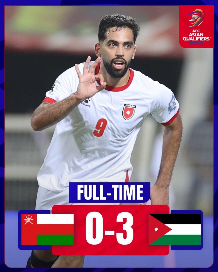 6月5日讯 北京时间6月6日00:00,世预赛亚洲区B组第9轮阿曼迎战约旦的比赛,上半场伊萨姆失单刀,塔哈造点奥尔万点射打破僵局,下半场奥尔万连进两球完成帽子戏法,塔马里献助攻,最终约旦3-0阿曼仍居第二领先第三伊拉克4分,阿曼无缘直通。