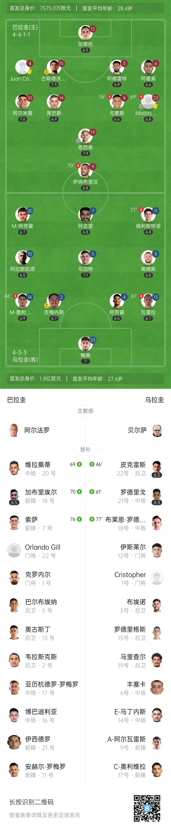 双方首发以及换人信息: