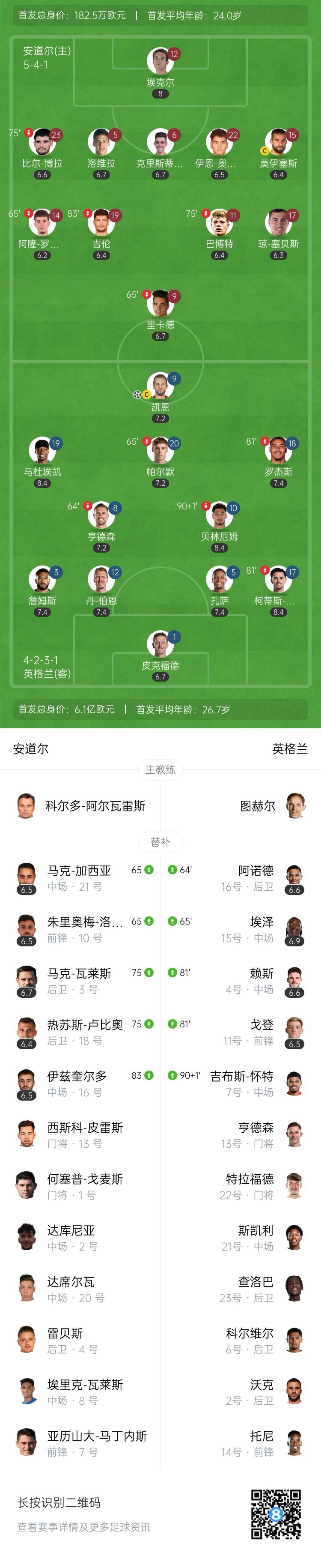 全场比赛结束,英格兰队1-0击败安道尔队。