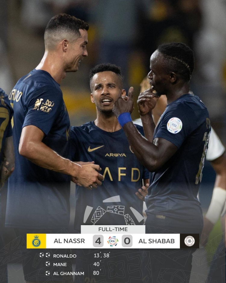 8月30日讯 北京时间8月30日凌晨2点整,2023-24赛季沙特联第4轮在沙特国王大学体育场展开角逐,利雅得胜利坐镇主场迎战利雅得青年人。上半场C罗点射梅开二度后送助攻,马内扩大比分,下半场C罗让点,加里卜失点,巴内加染红,哈纳姆破门。最终利雅得胜利主场4-0大胜利雅得青年人,利雅得胜利取得联赛两连胜。