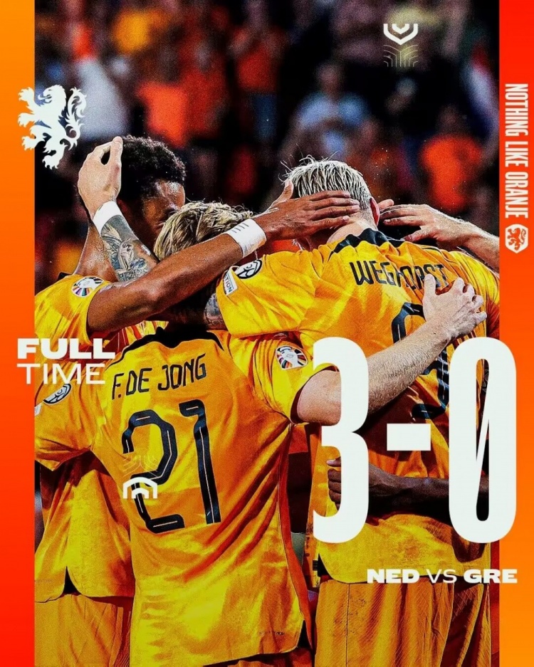 9月8日讯 北京时间9月8日02:45,欧洲杯预选赛小组赛第五轮荷兰主场迎战希腊的比赛,上半场德容恩门前抽射破门,加克波破门,韦霍斯特头球建功,邓弗里斯助攻双响,下半场双方均无建树,最终荷兰3-0大胜希腊升至小组第二。