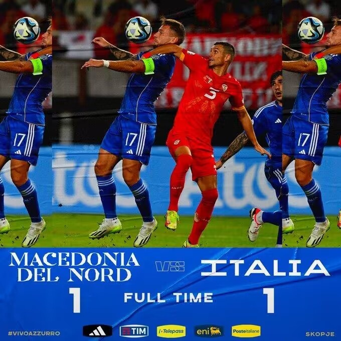 第81分钟,北马其顿前场左侧任意球机会,巴尔迪直接爆射,这球直挂远角,北马其顿1-1意大利。↓