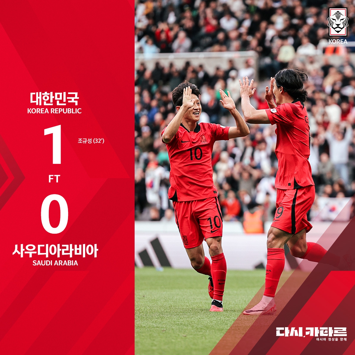 第31分钟,沙特后卫解围失误,曹圭成跟上头球破门,韩国1-0沙特。↓