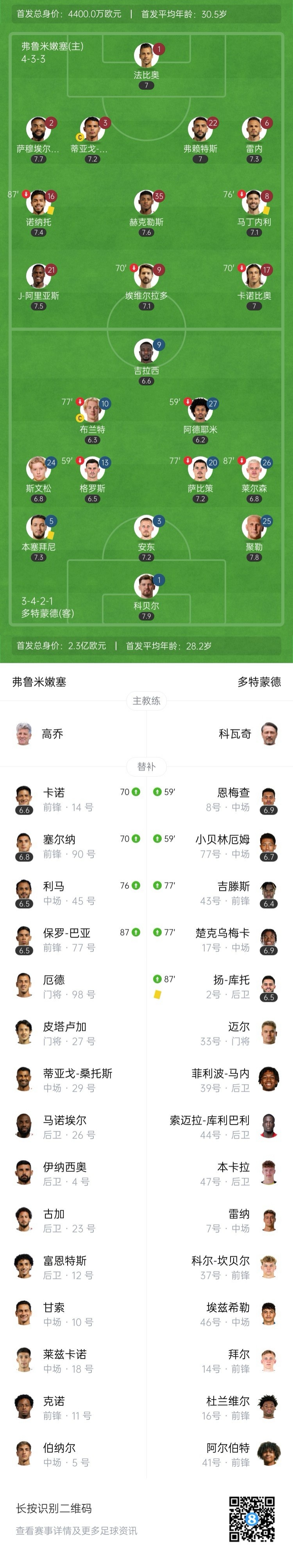 【双方首发以及换人信息】