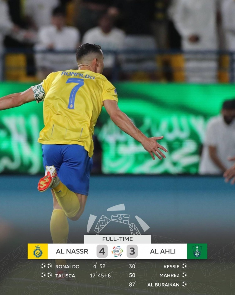 第51分钟,塔利斯卡直传,C罗扣球晃开角度左脚远射得分,利雅得胜利4-2吉达国民!↓